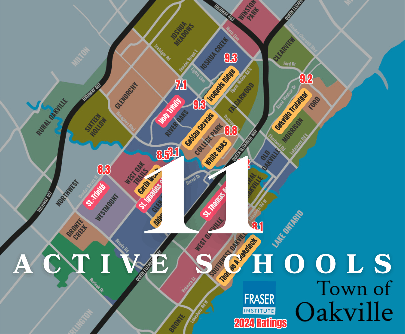 Oakville is part of the Halton Region, which is known for strong academic outcomes and well-funded public education.